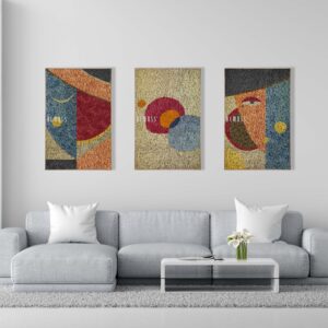 Das Moosbild Abstract Agallas stellt eine perfekte Harmonie zwischen natürlichen Materialien und moderner Kunst dar. Dieses einzigartige Stück besticht durch seine abstrakte Komposition, die lebendige Farben und interessante Texturen miteinander verbindet. Die verwendeten Farbtöne in Dunkelgrau, Ziegelrot, Senfgelb, Creme, Blau und Olivgrün schaffen einen faszinierenden visuellen Effekt. Das Design aus abstrakten Formen und Linien mit sanften Übergängen wirkt dynamisch und verleiht dem Raum einen Hauch von Raffinesse.