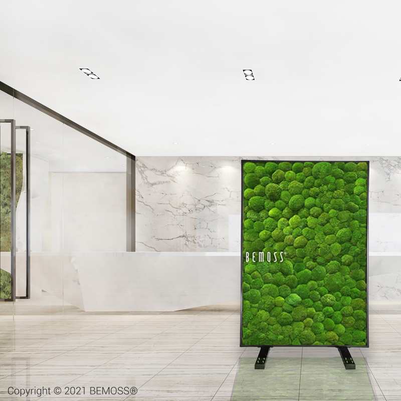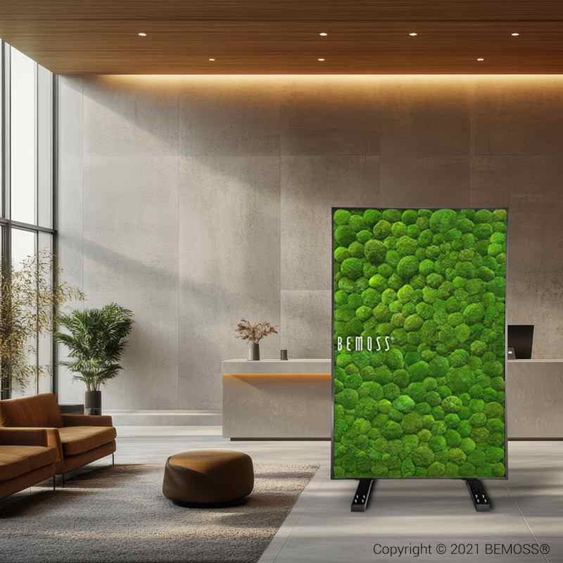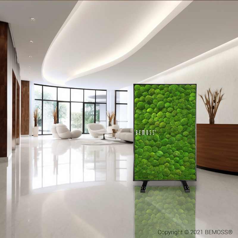 Moos Raumteiler KUGELMOOS LIGHT ist die perfekte Kombination aus Ästhetik und Funktionalität. Seine beidseitige Ausführung mit stabilisiertem kugelförmigem Moos bringt frisches Grün in jeden Innenraum, während sein modernes Design dem Raum natürliche Eleganz verleiht.