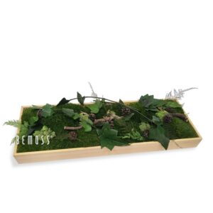Die Moos Tischdeko PFLANZEN Aragonia ist ein perfektes Beispiel natürlicher Schönheit, die sich hervorragend für Schreibtische, Empfangsbereiche oder Entspannungszonen eignet. In einem Holzrahmen ist 100 % natürliches, stabilisiertes Moos integriert, das ohne Bewässerung oder besondere Pflege sein frisches Aussehen behält. Ergänzt wird es durch kleine Zweige, Zapfen und Blätter, die gemeinsam eine natürliche Waldszenerie erschaffen.