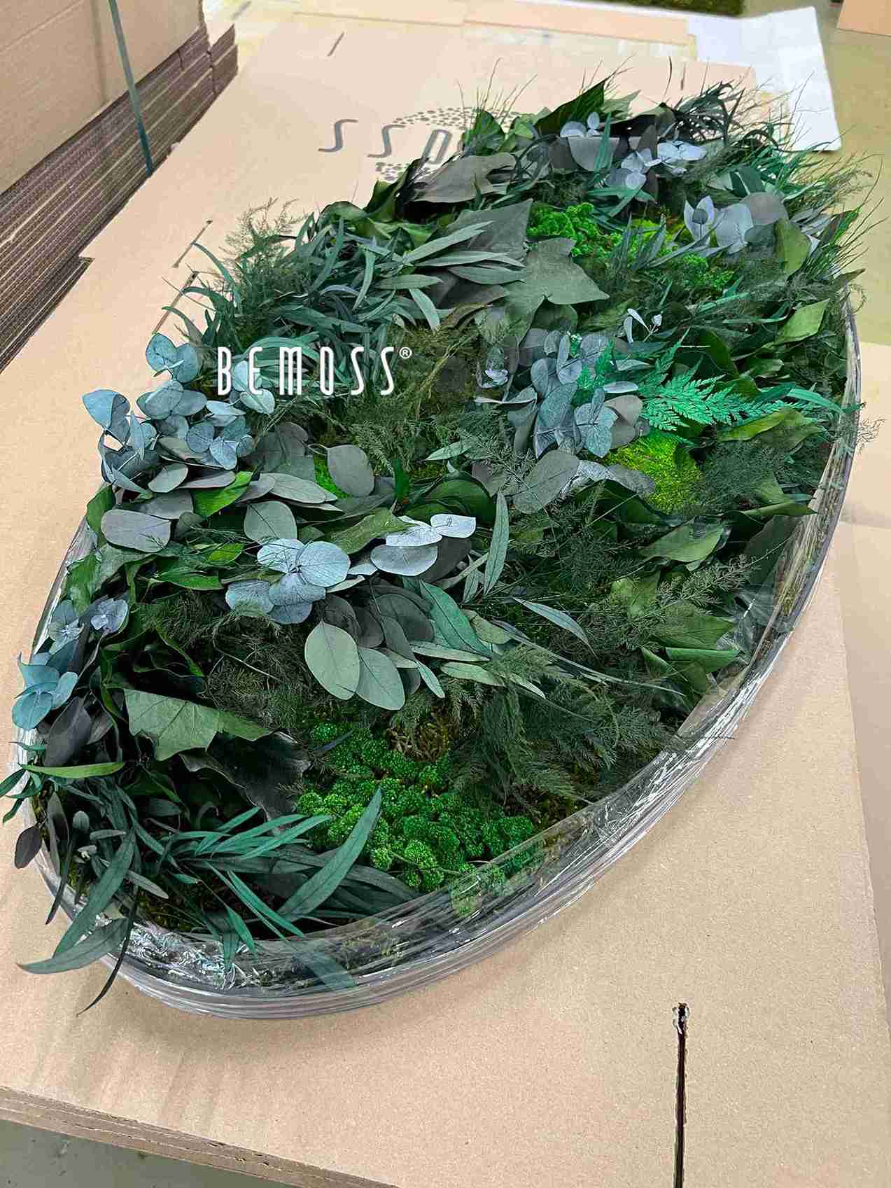 Alle Produkte von BEMOSS® werden handgefertigt in Deutschland. Moosbilder und Mooswände bestehen aus 100 % natürlichem Material, das durch ein spezielles Verfahren in einer Stabilisierungslösung konserviert wurde. Dadurch sind alle Moosbilder, Mooswände und stabilisierten Pflanzen pflegefrei – sie benötigen weder Tageslicht noch Wasser zum Erhalt. Die Lebensdauer der Moosbilder und -wände von BEMOSS® beträgt mehrere Jahre. Um diese möglichst lange zu bewahren, ist Folgendes entscheidend: