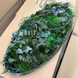 → Moosbilder oder Mooswände dürfen nicht gegossen, besprüht oder mit Wasser benetzt werden. Sowohl das Moos als auch die Pflanzen sind keine lebenden Organismen mehr – sie benötigen kein Wasser und können es nicht mehr aufnehmen. Regelmäßiger Wasserkontakt würde zu irreversiblen Schäden führen.