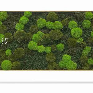 Moosbild FLACHMOOS & KUGELMOOS Doven mono vereint schlichte Eleganz mit natürlicher Struktur. Die Verbindung aus dichtem Flachmoos und runden Moospolstern erzeugt eine ruhige, harmonische Optik, die sich perfekt in moderne wie klassische Einrichtungen einfügt. Die verschiedenen Grüntöne wirken entspannend und zeitlos.