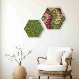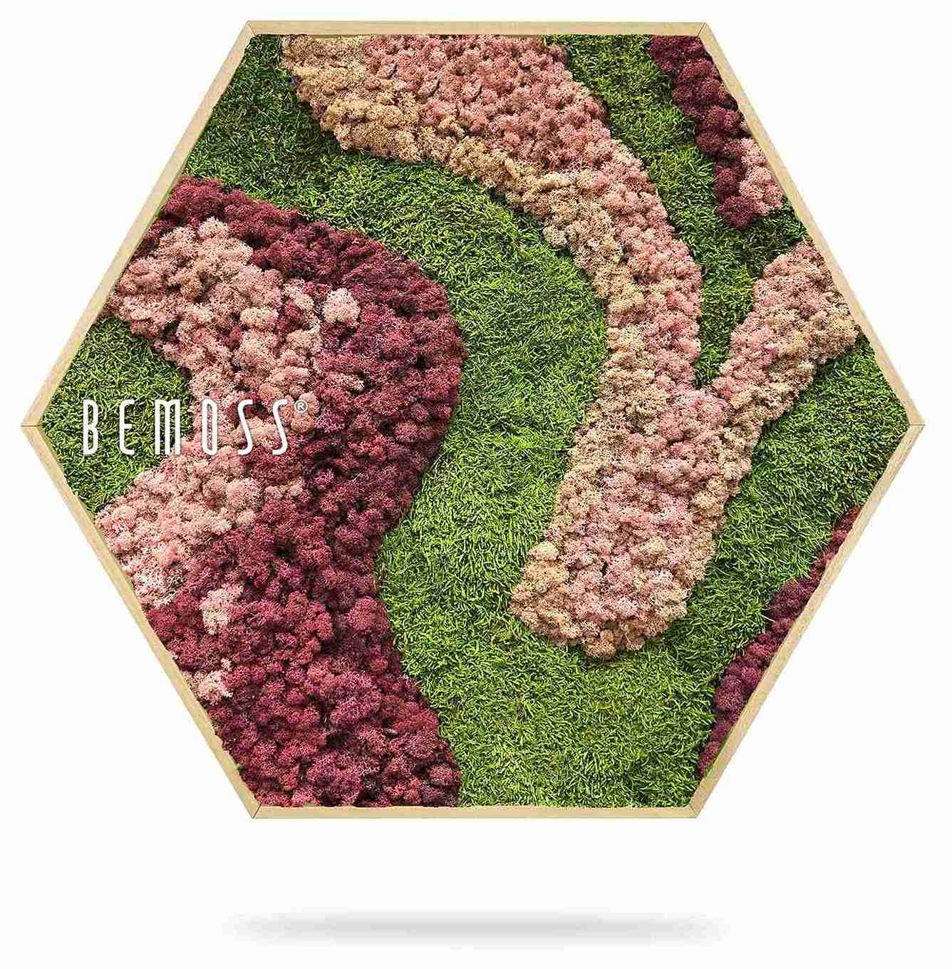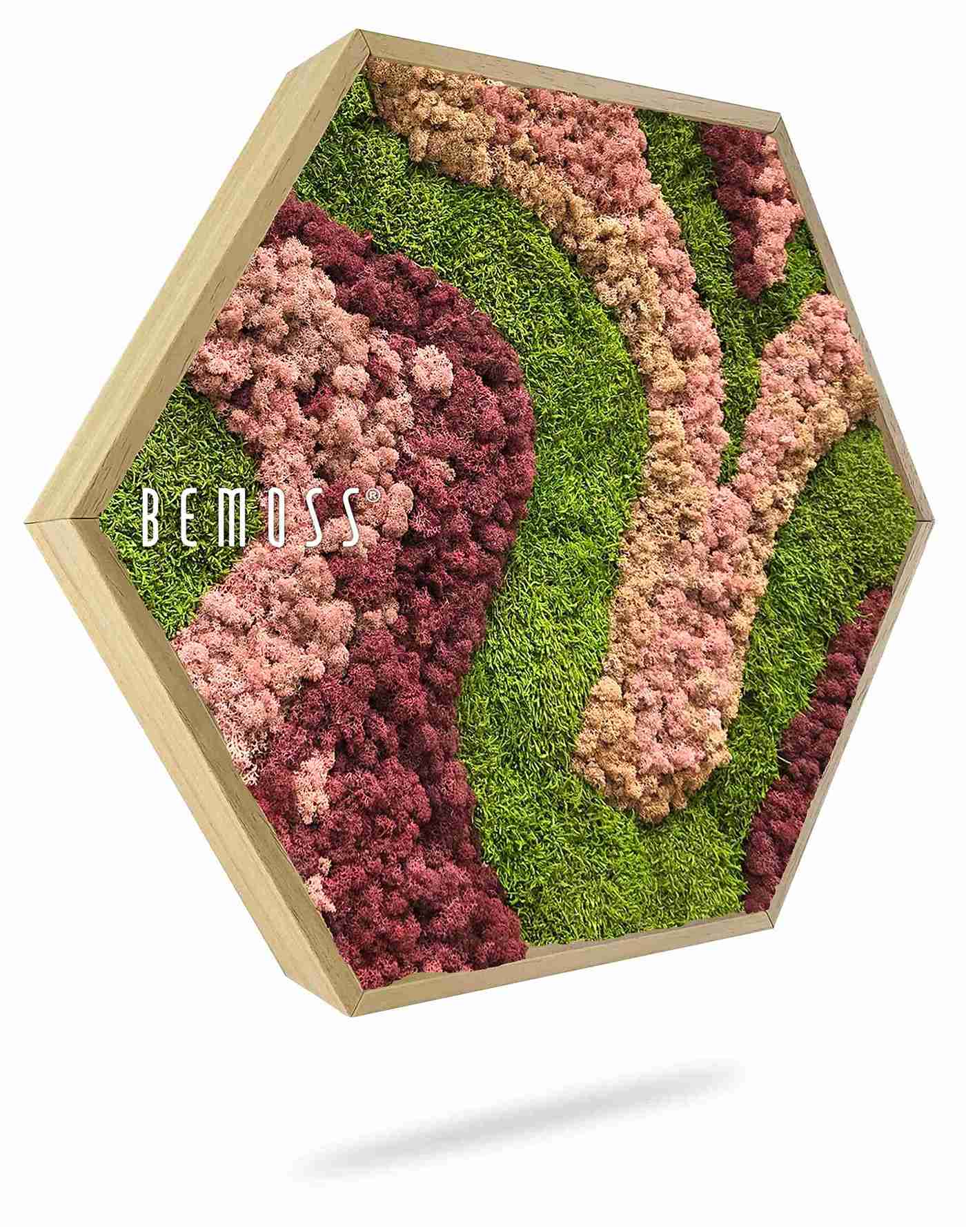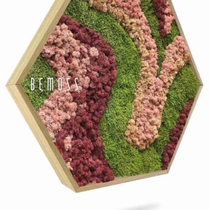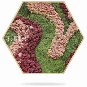 Verleihen Sie Ihrem Interieur zarte Rosatöne mit dem Moosbild BEMOSS® ORTHO ARROSA! Dieses handgefertigte Stück vereint kontrastierende Burgunder- und pudrige Rosatöne mit natürlichem Grün, was einen wunderschönen visuellen Effekt erzeugt. Hergestellt aus 100% natürlichem stabilisiertem Moos, ist es pflegefrei und hypoallergen, sodass es die Schönheit der Natur ohne Sorgen bringt.