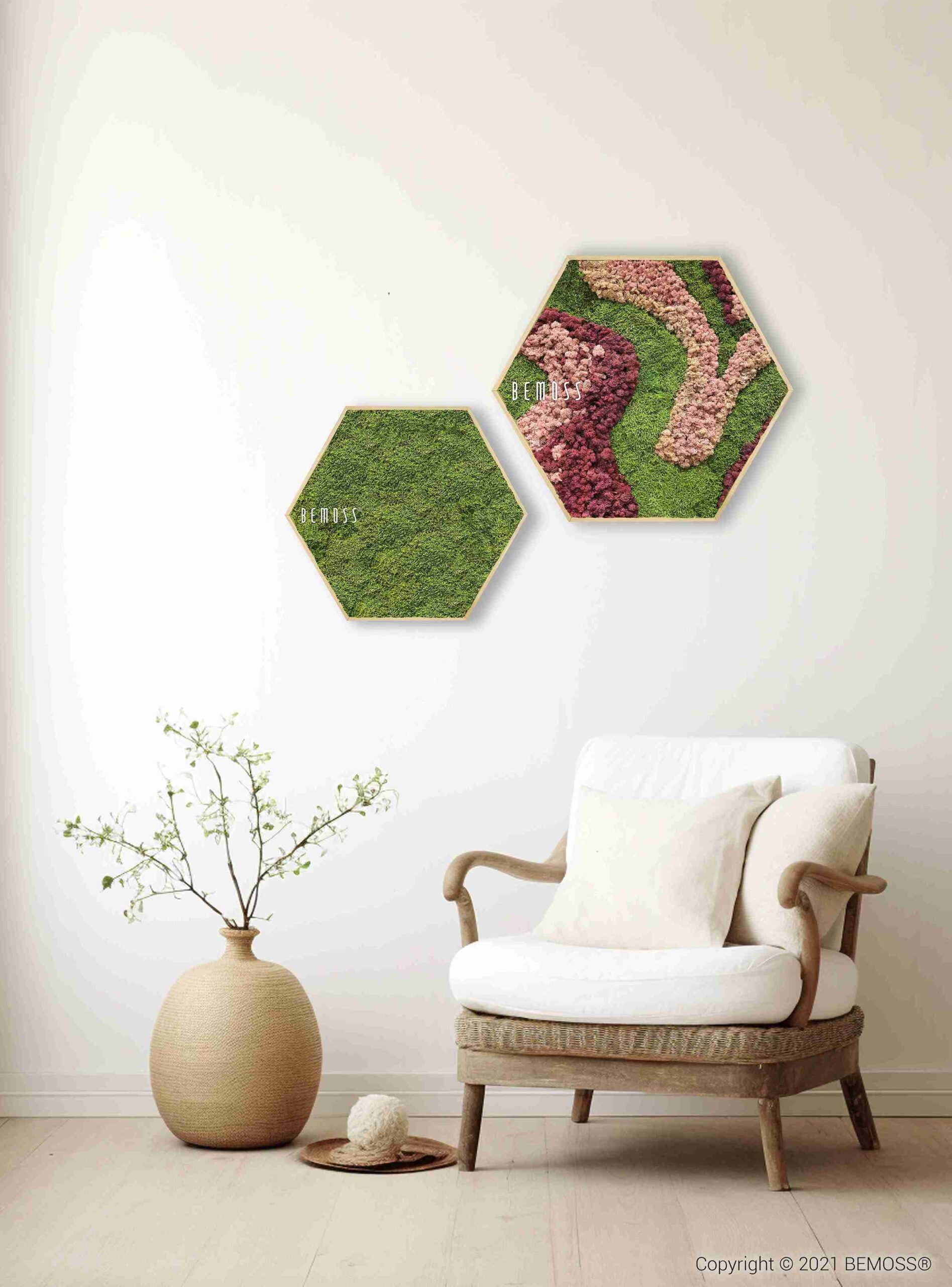 Alle Produkte von BEMOSS® werden handgefertigt in Österreich. Moosbilder und Mooswände bestehen aus 100 % natürlichem Material, das durch ein spezielles Verfahren in einer Stabilisierungslösung konserviert wurde. Dadurch sind alle Moosbilder, Mooswände und stabilisierten Pflanzen pflegefrei – sie benötigen weder Tageslicht noch Wasser zum Erhalt. Die Lebensdauer der Moosbilder und -wände von BEMOSS® beträgt mehrere Jahre. Um diese möglichst lange zu bewahren, ist Folgendes entscheidend: