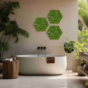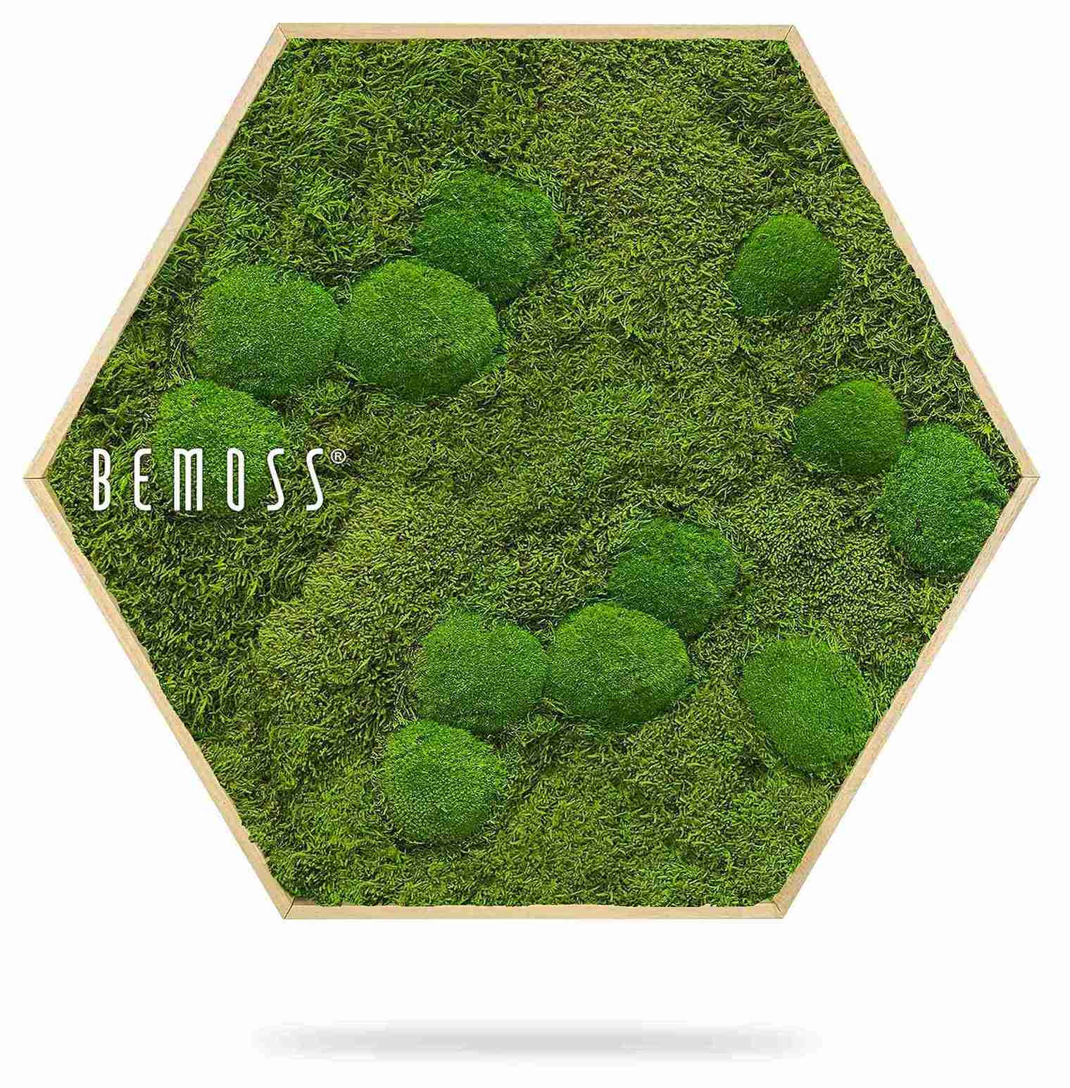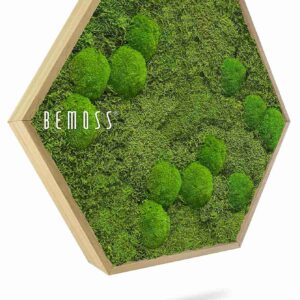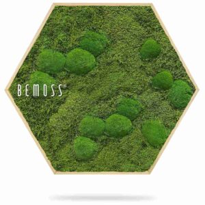 Das Moosbild Hexagon FLACHMOOS & KUGELMOOS Aves vereint zwei Moosarten, die gemeinsam einen natürlichen Kontrast aus Textur und Grüntönen schaffen. Flachmoos bildet eine sanfte, ruhige Grundlage, während die kugelförmigen Polster des Kugelmooses dem Bild Volumen und einen natürlichen 3D-Effekt verleihen. Diese Kombination bringt die beruhigende Anmutung eines Waldes in Ihr Zuhause und schafft eine angenehme Verbindung zur Natur.