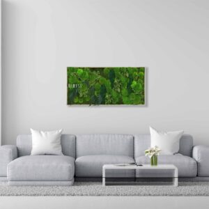 Dieses Bild ist nicht nur visuell ansprechend, sondern auch praktisch. Es ist pflegeleicht, ökologisch und hypoallergen, was seine langanhaltende Schönheit und Eignung für jedes Interieur garantiert. Darüber hinaus hat Moos Eigenschaften, die die Schallakustik im Raum verbessern.