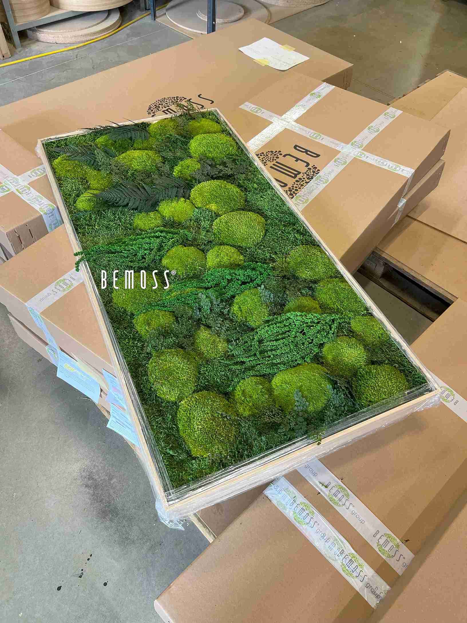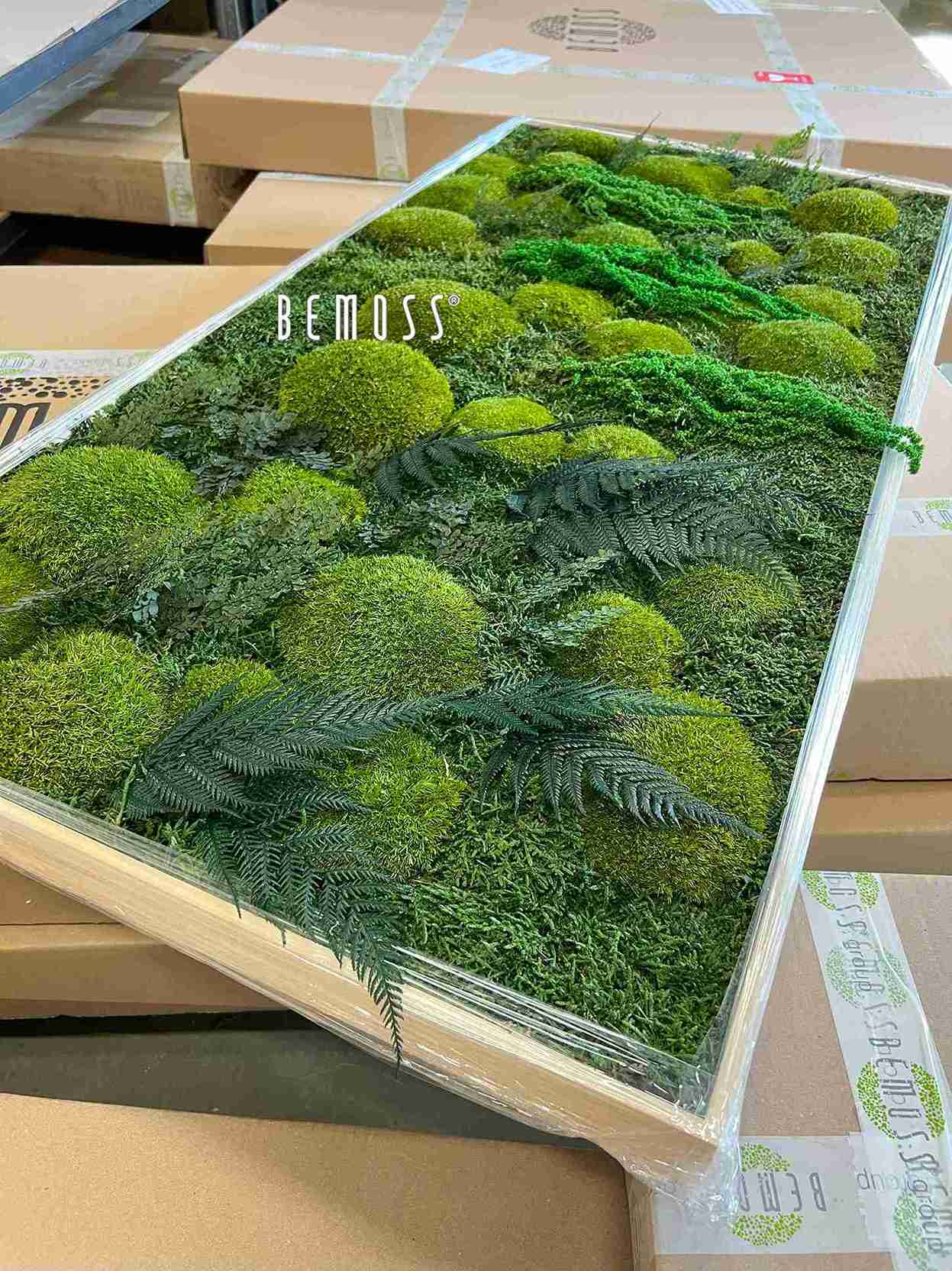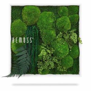 Alle Produkte von BEMOSS® werden handgefertigt in Deutschland. Moosbilder und Mooswände bestehen aus 100 % natürlichem Material, das durch ein spezielles Verfahren in einer Stabilisierungslösung konserviert wurde. Dadurch sind alle Moosbilder, Mooswände und stabilisierten Pflanzen pflegefrei – sie benötigen weder Tageslicht noch Wasser zum Erhalt. Die Lebensdauer der Moosbilder und -wände von BEMOSS® beträgt mehrere Jahre. Um diese möglichst lange zu bewahren, ist Folgendes entscheidend: