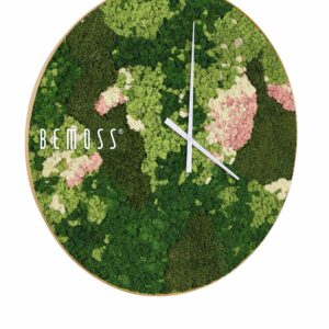 Die Moosuhr BEMOSS® ORTHO PINK bringt Sanftheit und Eleganz in Ihr Zuhause. Hergestellt aus 100% natürlichem stabilisiertem Moos, ist sie ökologisch, hypoallergen, pflegeleicht und bietet einzigartige akustische Eigenschaften. Die zarten Grüntöne und rosa Akzente erzeugen einen harmonischen Kontrast, der Ihr Interieur erstrahlen lässt.
