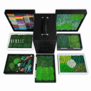 Die gesamte Premium Moos-Musterbox ist in einem robusten und praktischen Koffer mit Tragegriff untergebracht, wodurch sie leicht zu transportieren ist und sich ideal für persönliche Präsentationen beim Kunden eignet. Sie richtet sich insbesondere an Unternehmen, Architekten, Innenarchitekten, Projektentwickler und Geschäftspartner von BEMOSS®, die einen vollständigen Überblick über alle verfügbaren Materialien benötigen.