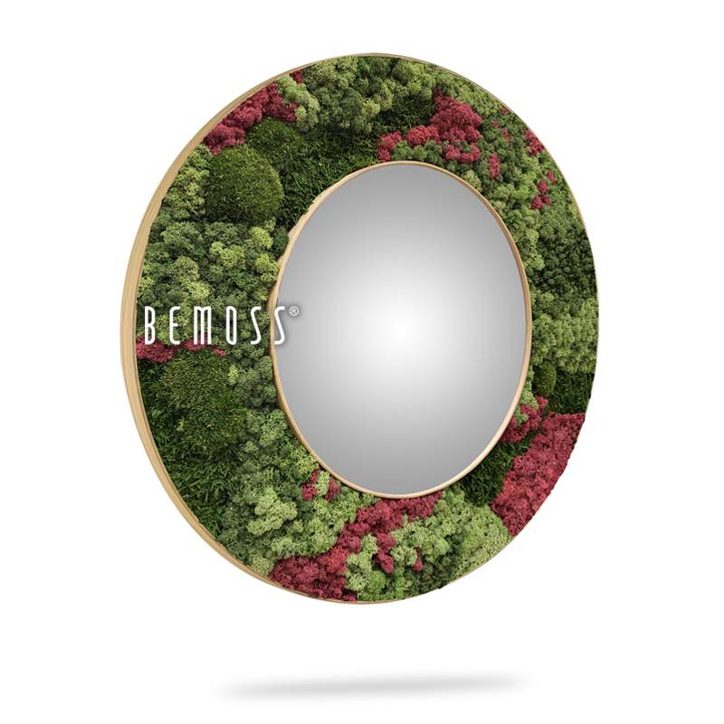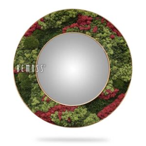 Bringen Sie ein Stück Natur in Ihr Interieur mit dem runden Spiegel BEMOSS® ORTHO Burgundy! Der Rahmen ist verziert mit einer Kombination aus 100% natürlichem, stabilisiertem Moos in satten grünen und weinrot-violetten Tönen, die einen wunderschönen Kontrast schaffen. Jedes Stück ist handgefertigt in Österreich, pflegeleicht und hypoallergen, sodass es sein Aussehen ohne Bewässerung oder Licht behält.